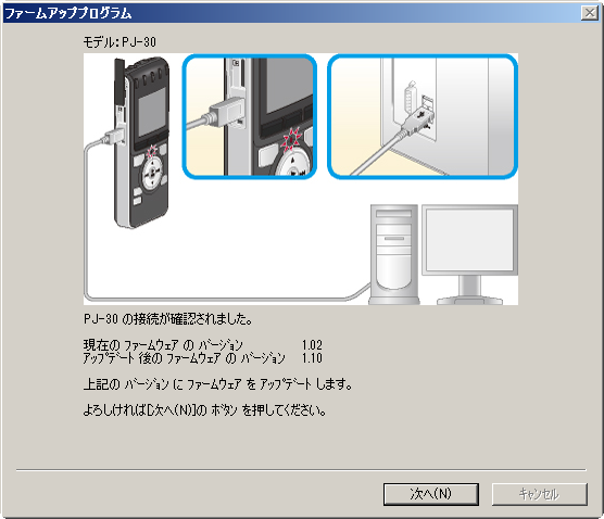 関連:PJ-35 / PJ-30 ファームウェアアップデートについて(Windows)