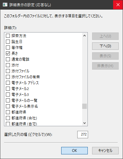 これらのファイルは、上述の「詳細表示の設定」で「長さ」の値がない。