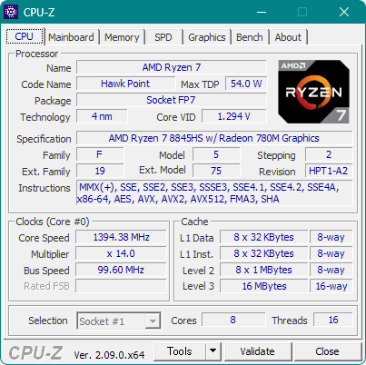 当然だが、Ryzen 9 7945HXはモバイル用のCPUであり、基板にハンダ付けされているので、換装は不可能である。