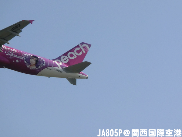 成田行初便のMM111便は、篠田麻里子さんの顔写真を機体にラッピングした特別塗装機であった。